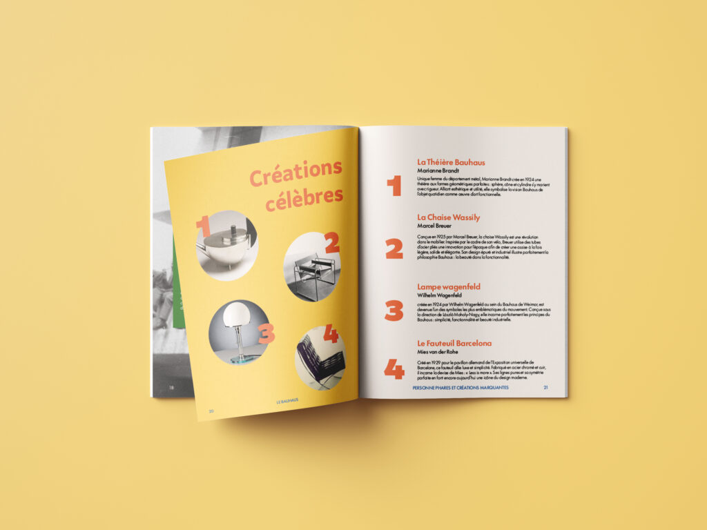 La mise en page, la typographie et le traitement des images ont été pensés pour refléter l’esprit avant-gardiste et rationnel de ce courant majeur de l’histoire du design.