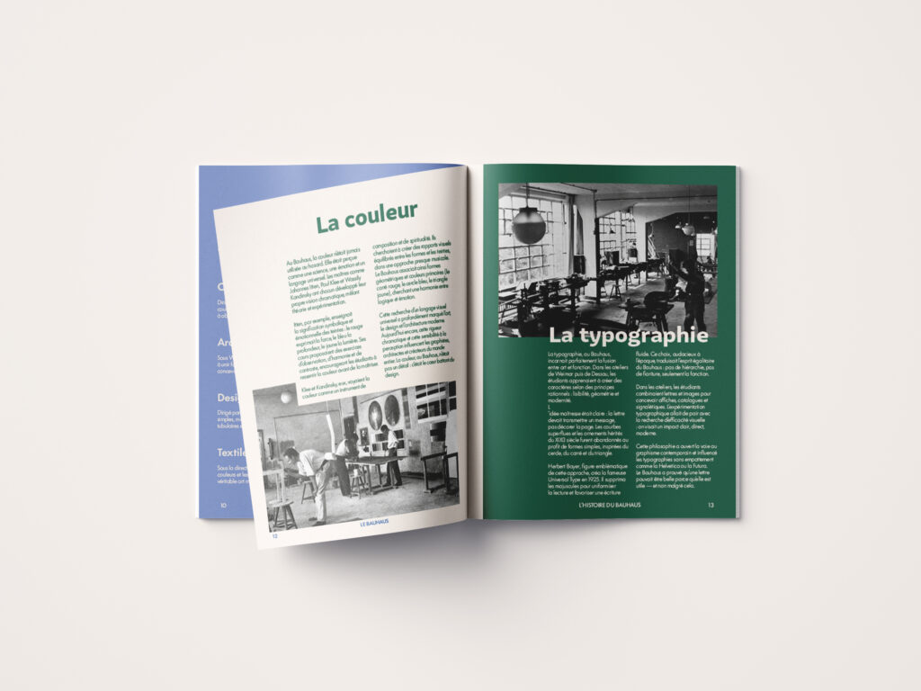Conception d’un magazine explorant le mouvement Bauhaus à travers une direction artistique sobre et structurée. Le projet met de l’avant les principes fondamentaux du Bauhaus : fonctionnalité, géométrie et hiérarchie claire.